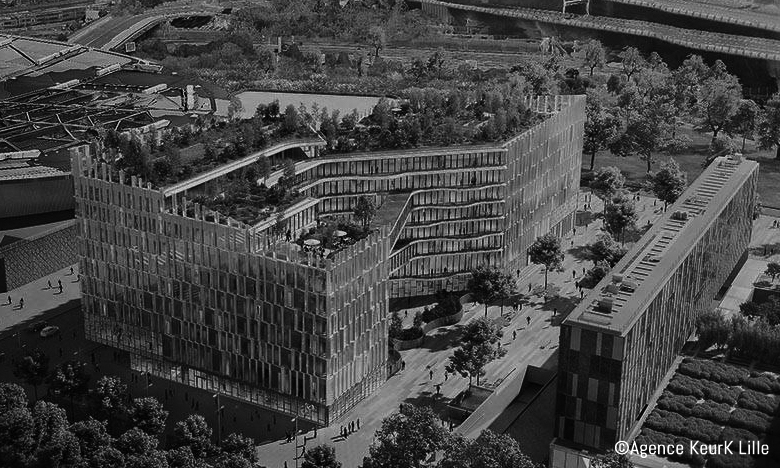 Le Biotope imaginé par les architectes Henning Larsen Architects (Danemark) et Keurk Architecture (Lille) sera doté de grandes ouvertures donnant sur des terrasses végétalisées et parsemées d’arbres et d’arbustes. En plus des surfaces de bureaux, il accueillera un atrium sur 2 étages, un espace de restauration en roof top, un auditorium, des espaces de rencontres et un parking silo. Modulable, il pourra s’adapter facilement aux évolutions des besoins